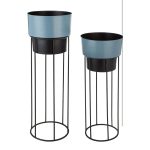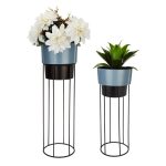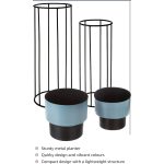 Modern metal planters with sleek blue pots and tall, minimalist black stands-Perfect for adding height and elegance to any space.