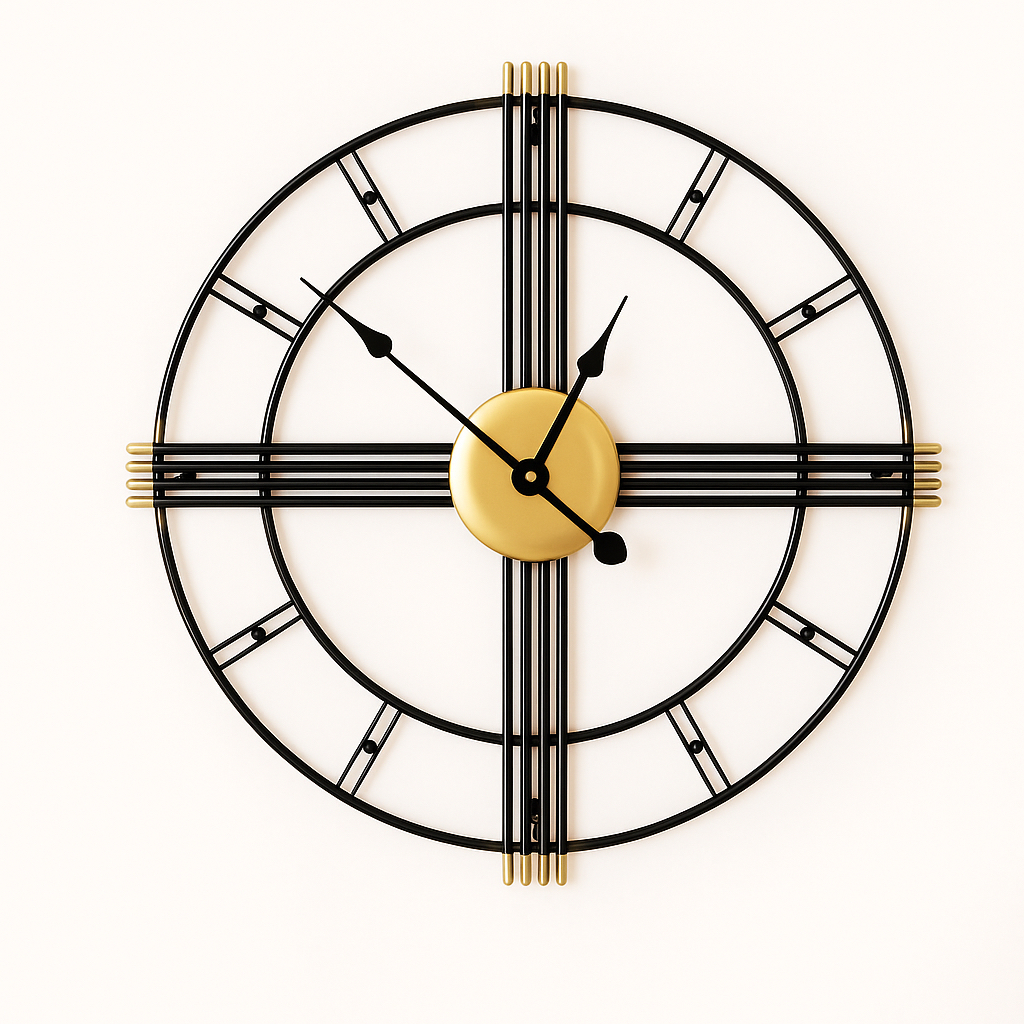 Add a bold, modern statement to your space with this striking 24″x24″ wall clock. Featuring a minimalist open-frame design, this piece combines matte black metal with a sleek gold centerpiece, blending industrial style with timeless sophistication.